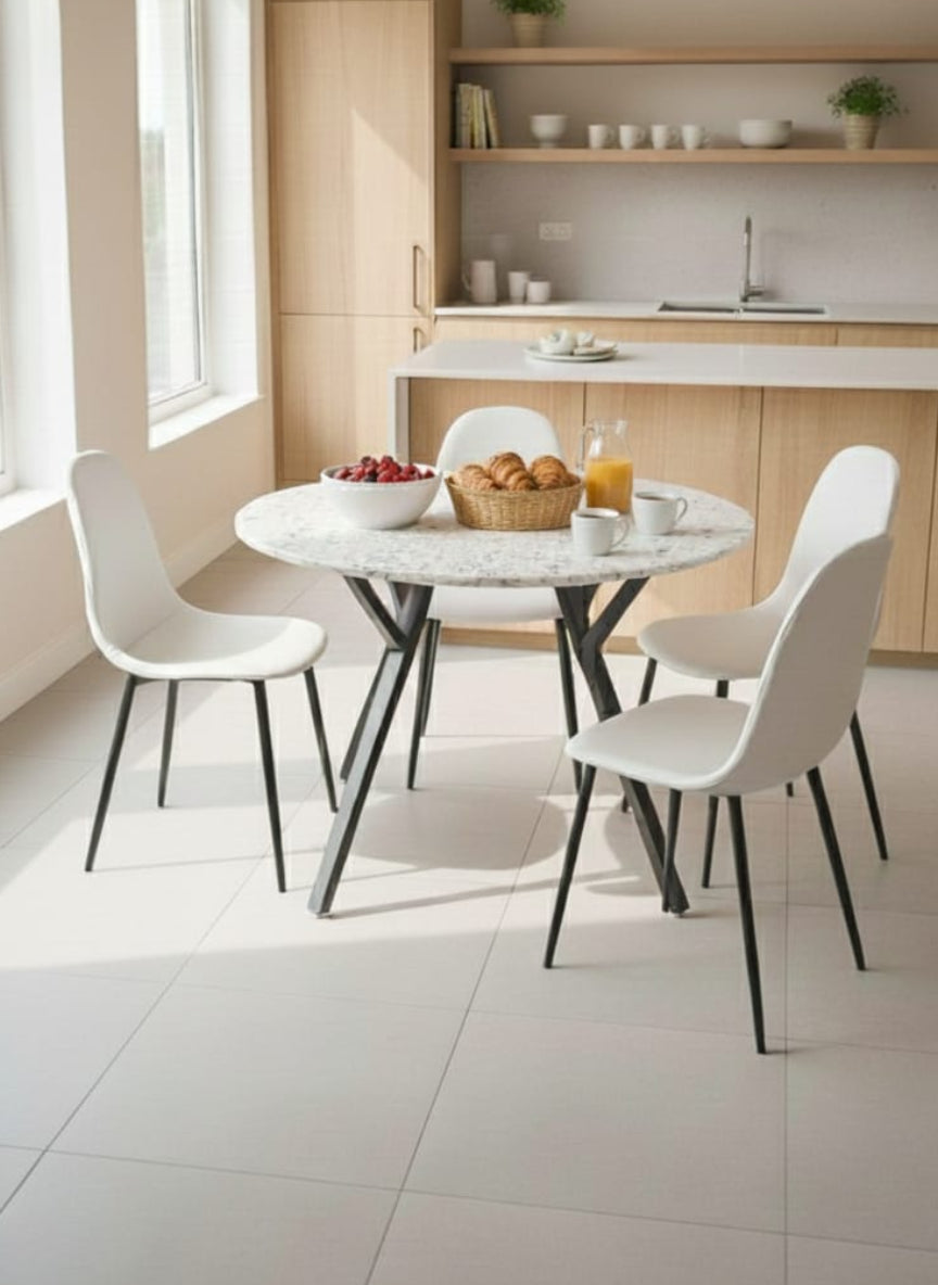 517T - 348W Marble imitation White Faux Leather Chair 5pc set (Copy)
