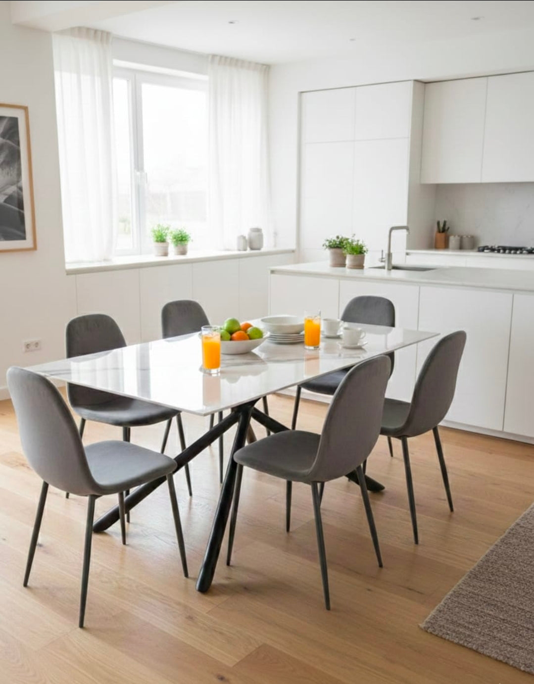 877W - 348G Stone Top Grey Velvet chairs